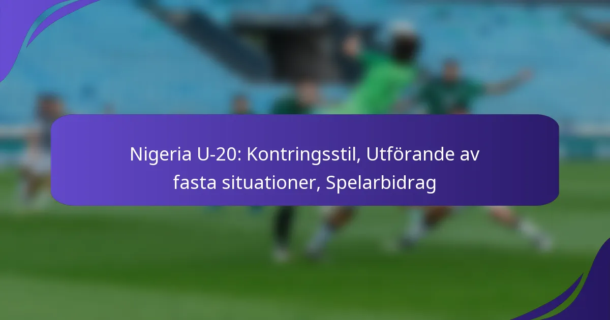 Nigerias U-20-lag visar upp en dynamisk kontringsstil som betonar snabba övergångar från försvar till anfall, och utnyttjar de ytor som lämnas av motståndarna. Deras strategiska utförande av fasta situationer förbättrar ytterligare deras spel och maximerar målchanser under kritiska ögonblick. Bidrag från nyckelspelare är avgörande för lagets framgång, där individer utmärker sig i målskytte, assist och defensiva roller, vilket höjer lagets övergripande prestation.